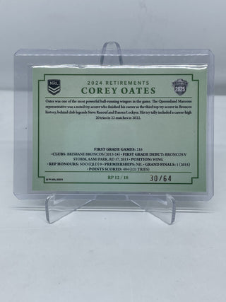 2025 NRL Traders 2024 Retirements Corey Oates Brisbane Broncos RP 12/18 30/64