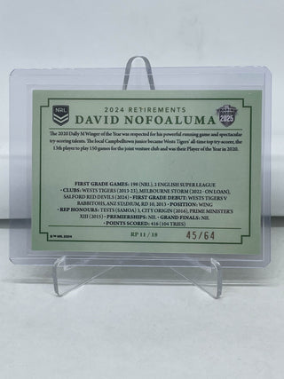 2025 NRL Traders 2024 Retirements David Nofoaluma Wests Tigers RP 11/18 45/64