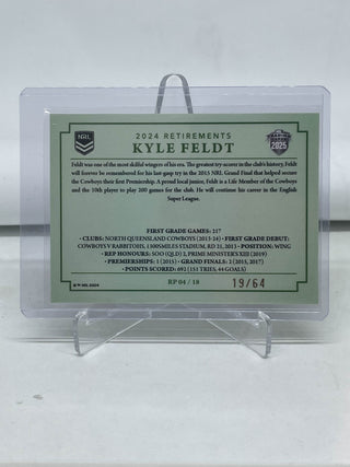 2025 NRL Traders 2024 Retirements Kyle Feldt North Queensland Cowboys RP 04/18 19/64