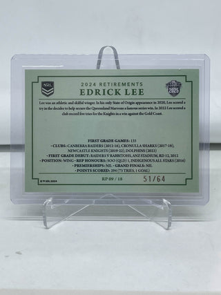 2025 NRL Traders 2024 Retirements Edrick Lee Redcliffe Dolphins RP 09/18 61/64