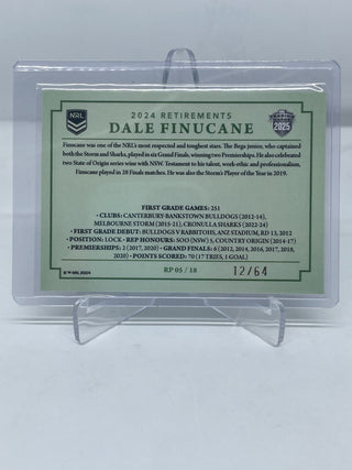 2025 NRL Traders 2024 Retirements Dale Finucane Cronulla-Sutherland Sharks RP 05/18 12/64