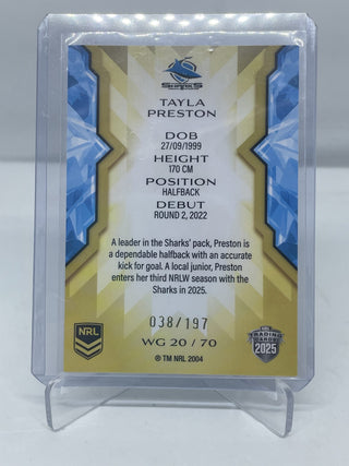 2025 NRL Traders Tayla Preston Cronulla-Sutherland Sharks NRLW WG 20/70 038/197