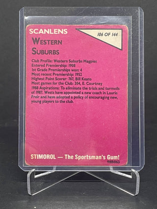 1988 Scanlens Terry Lamb Hand Signed Western Suburbs Magpies Card 106 of 144