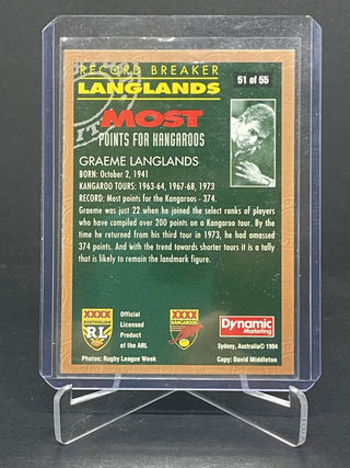 1994 Dynamic Record Breaker Graeme Langlands Kangaroos Most Points 51/55 Hand Signed!!