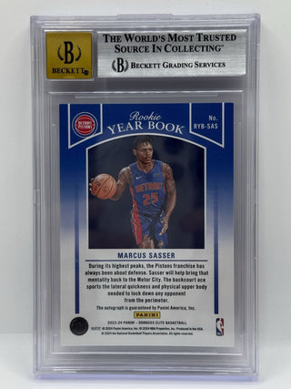 2023-24 Donruss Elite Rookie Yearbook Autographs Red/Gold Marcus Sasser 02/10 BGS NM-MT 8