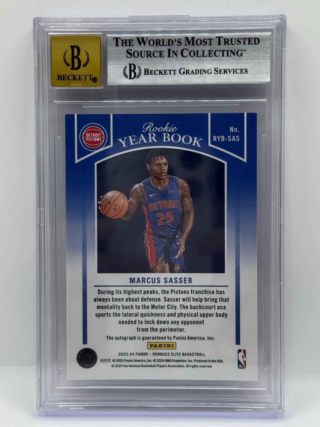 2023-24 Donruss Elite Rookie Yearbook Autographs Red/Gold Marcus Sasser 02/10 BGS NM-MT 8