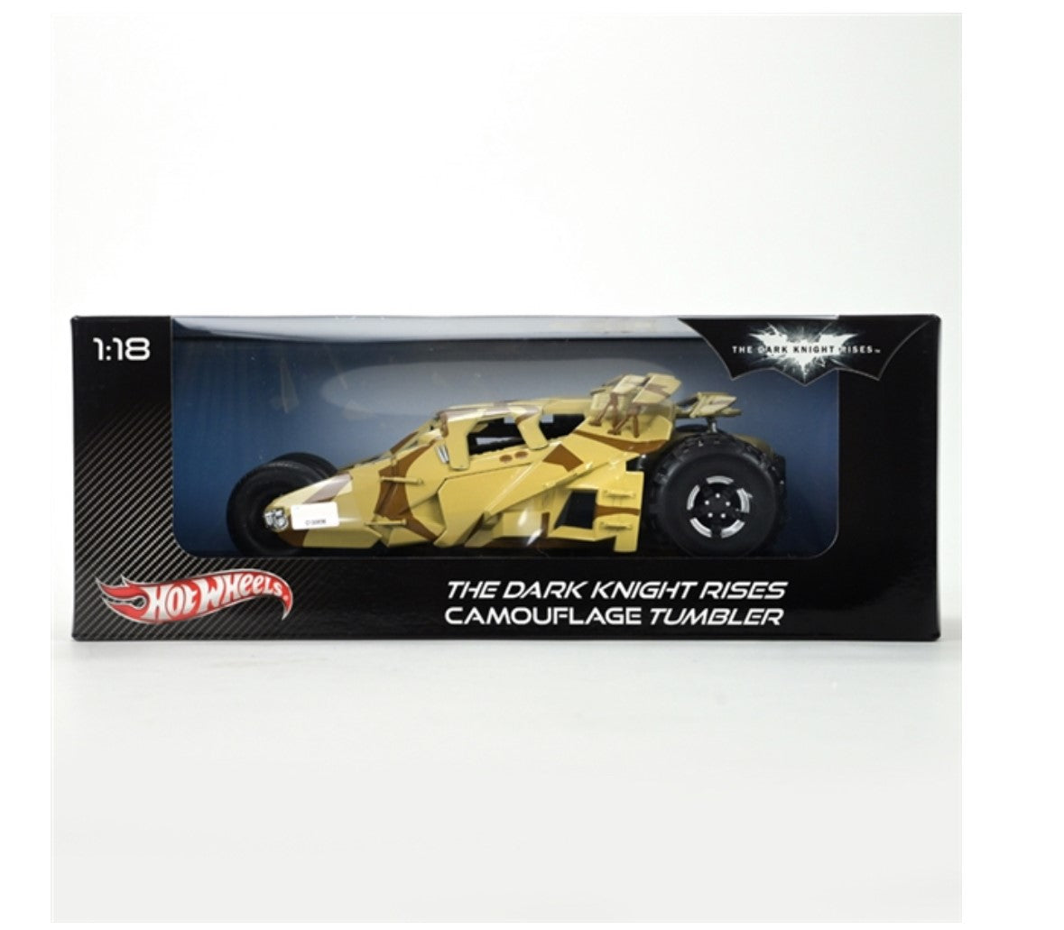 • This 2012 The Dark Knight Rises 1:18 Scale Die-Cast Batmobile Camouflage Tumbler with BANE Inscription has been personally autographed by Tom Hardy during his signing with Celebrity Authentics. Tumbler ships in original color display box, made of die-cast and plastic parts with rubber tires and detailed interior and exterior.