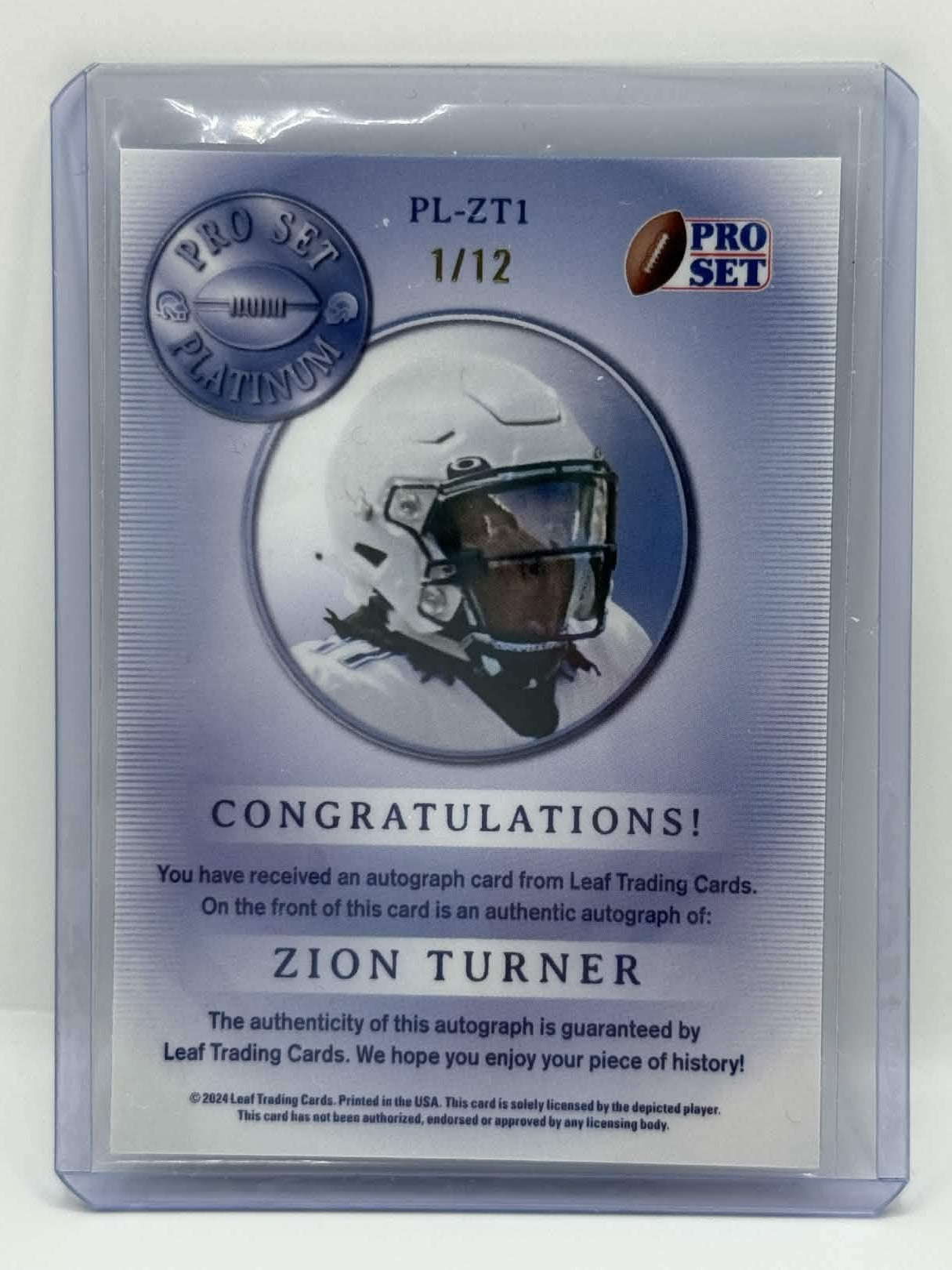 • 1x 2024 Leaf Pro Set Metal Platinum Zion Turner Blue Prismatic Auto 1/12