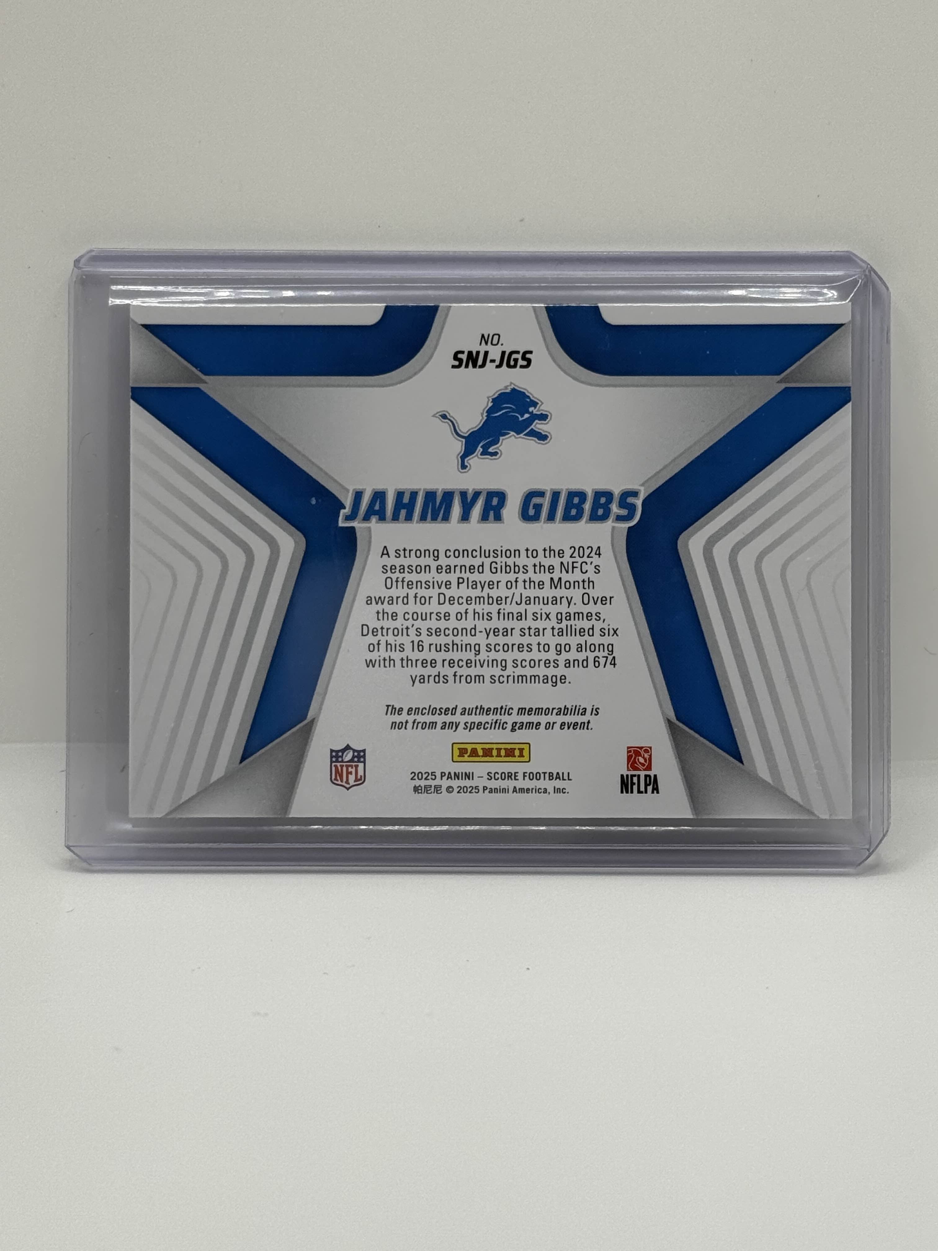 • 1x 2025 Panini Score Football Jahmyr Gibbs Stars Of The NFL Patch #SNJ-JGS