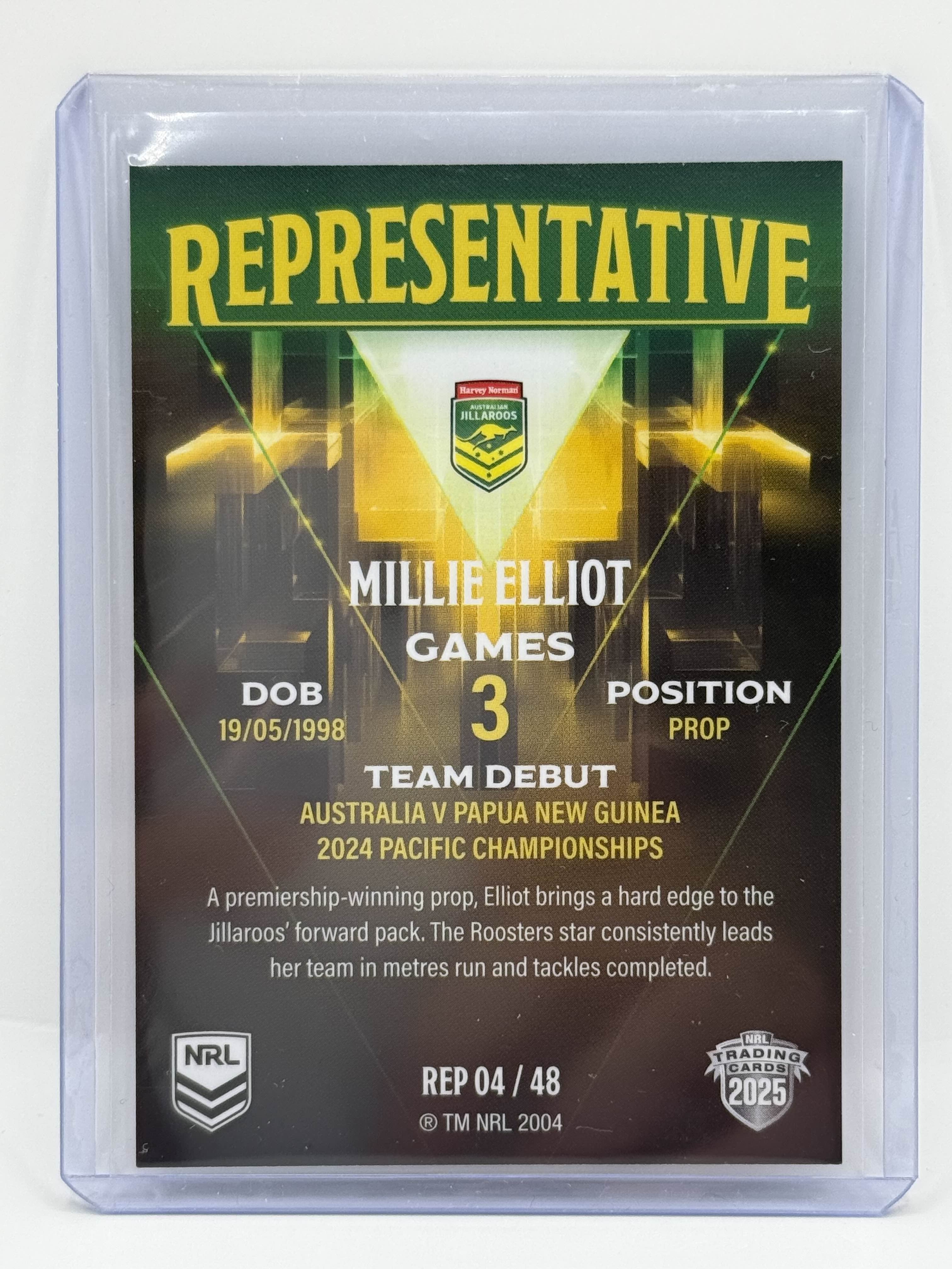 • 1x 2025 NRL Elite Representative Millie Elliot Australia Kangaroos - REP #04/48