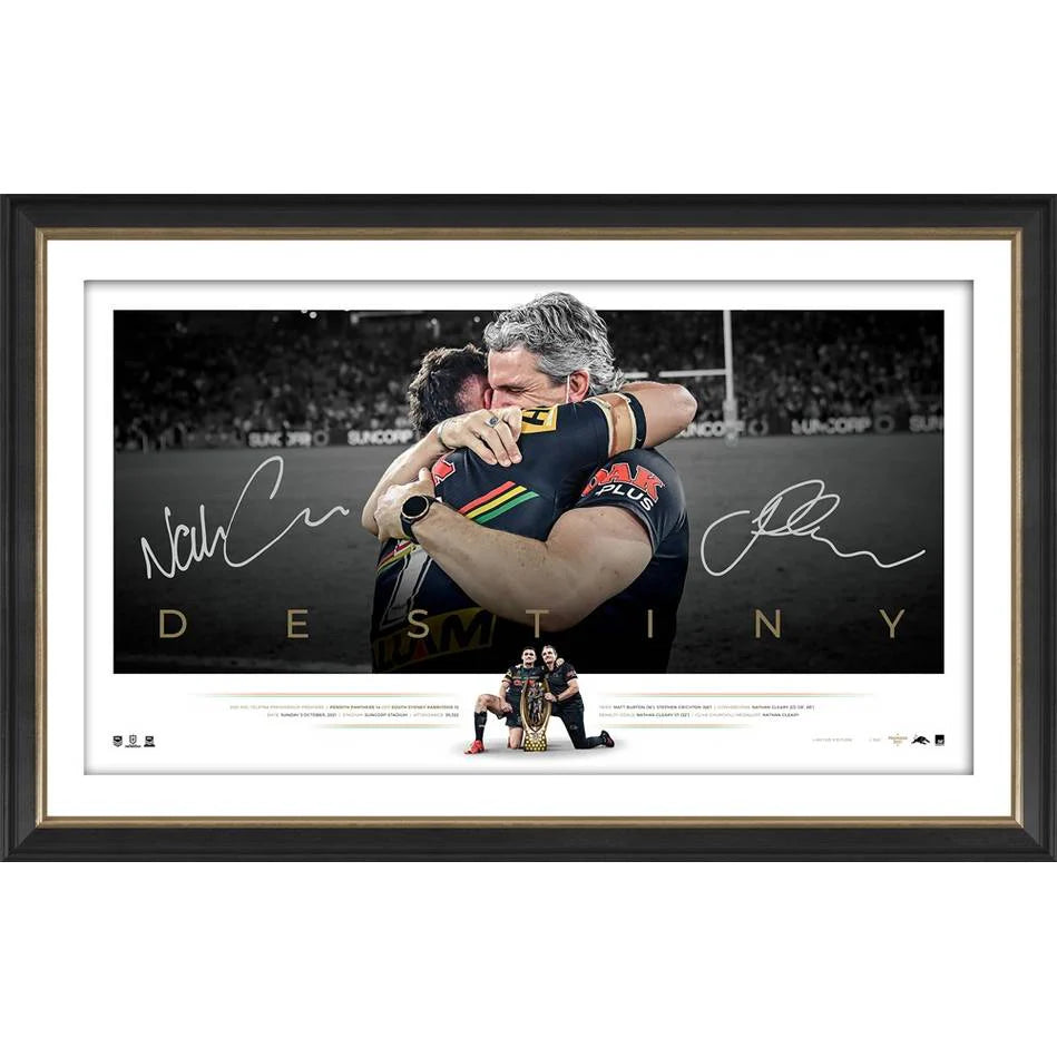 • Penrith Panthers are proud to release 'Destiny’, an incredible tribute to the Panthers’ unforgettable Premiership triumph. Limited to just 250 editions, each edition comes personally signed by Nathan and Ivan Cleary, and is officially licensed and endorsed by the NRL. This is a must-have for all Penrith fans and astute collectors alike – secure yours now to avoid disappointment.