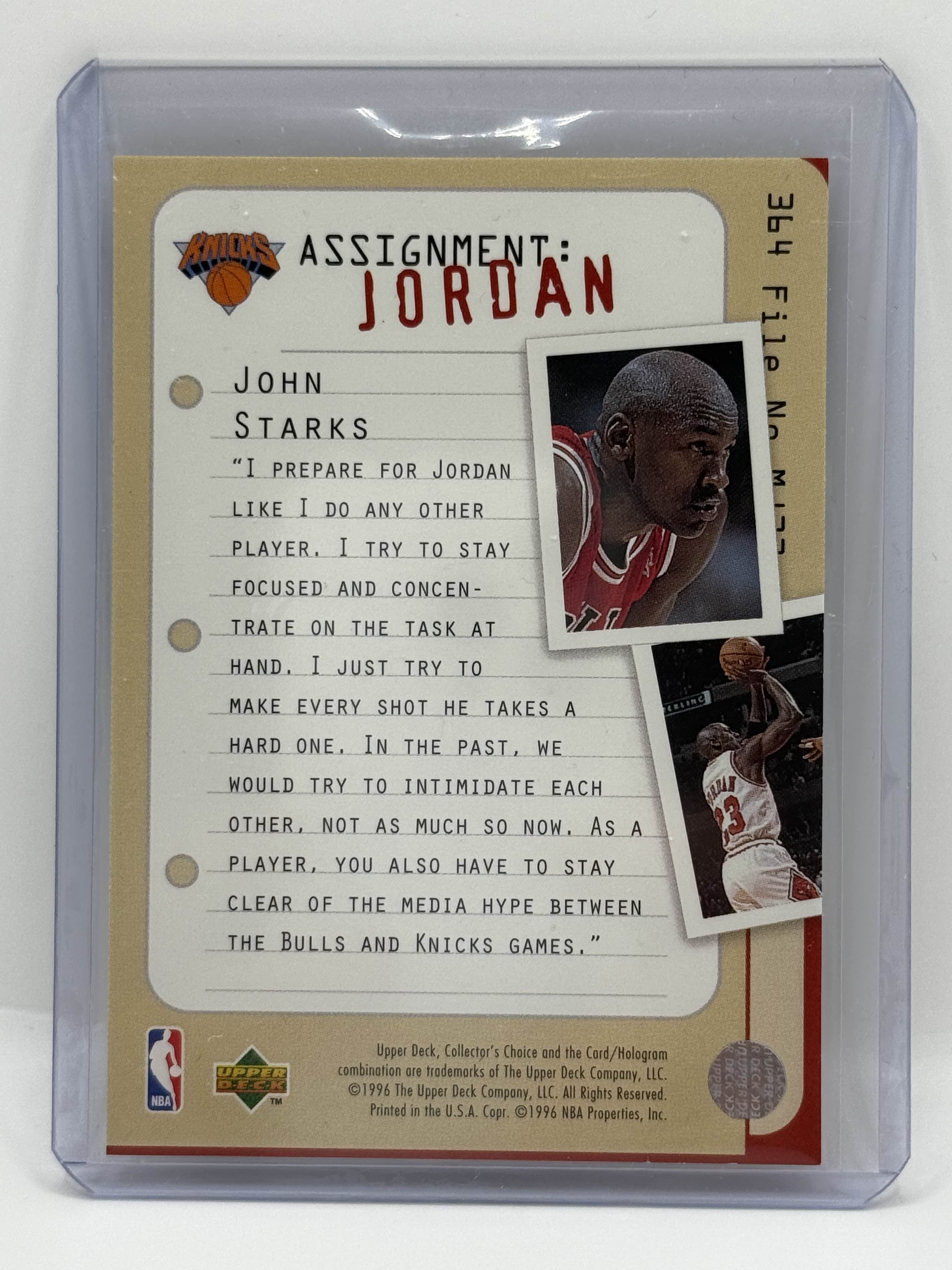 1996 Upper Deck Collectors Choice John Starks Assignment: Jordan - No. 364