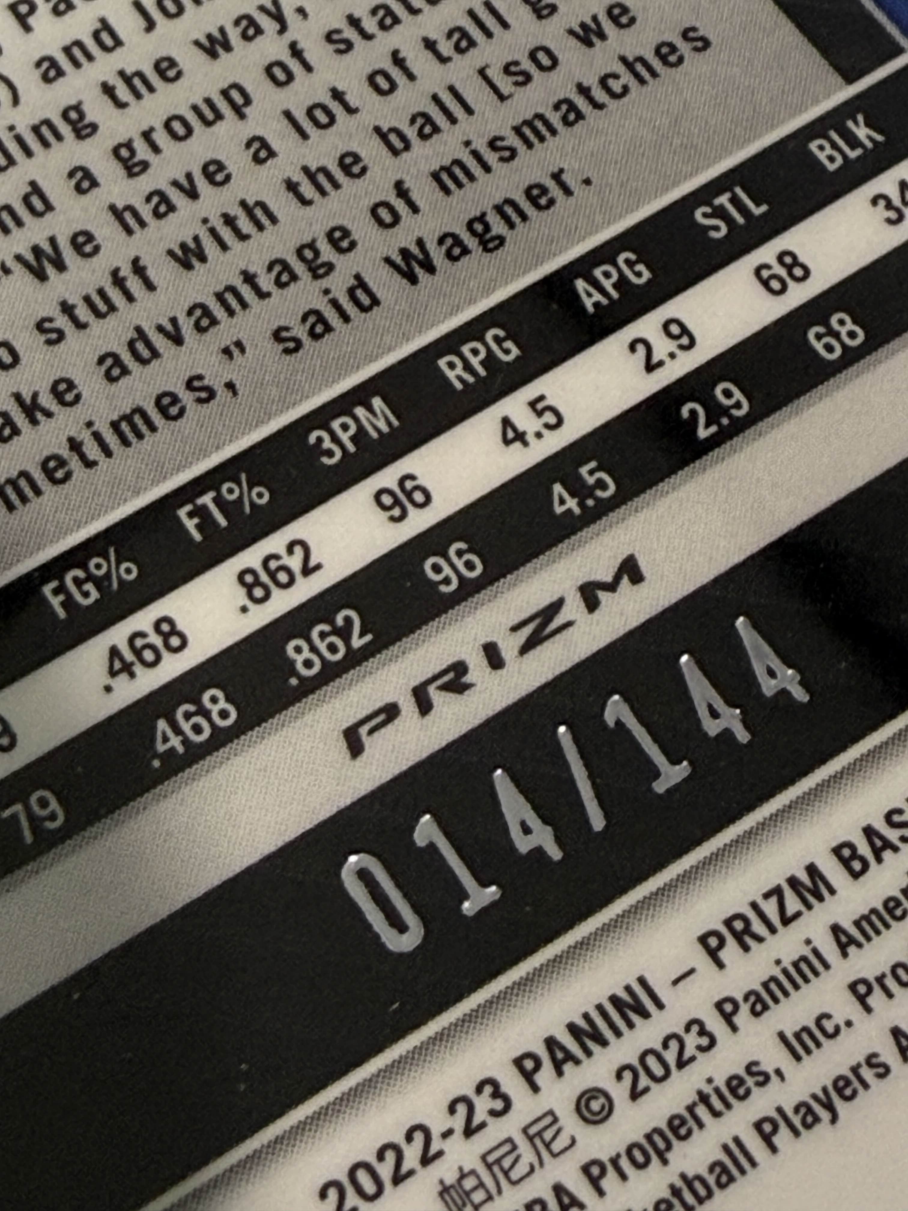 2022-23 Panini Prizm Franz Wagner Blue Sparkle Prizm 014/144