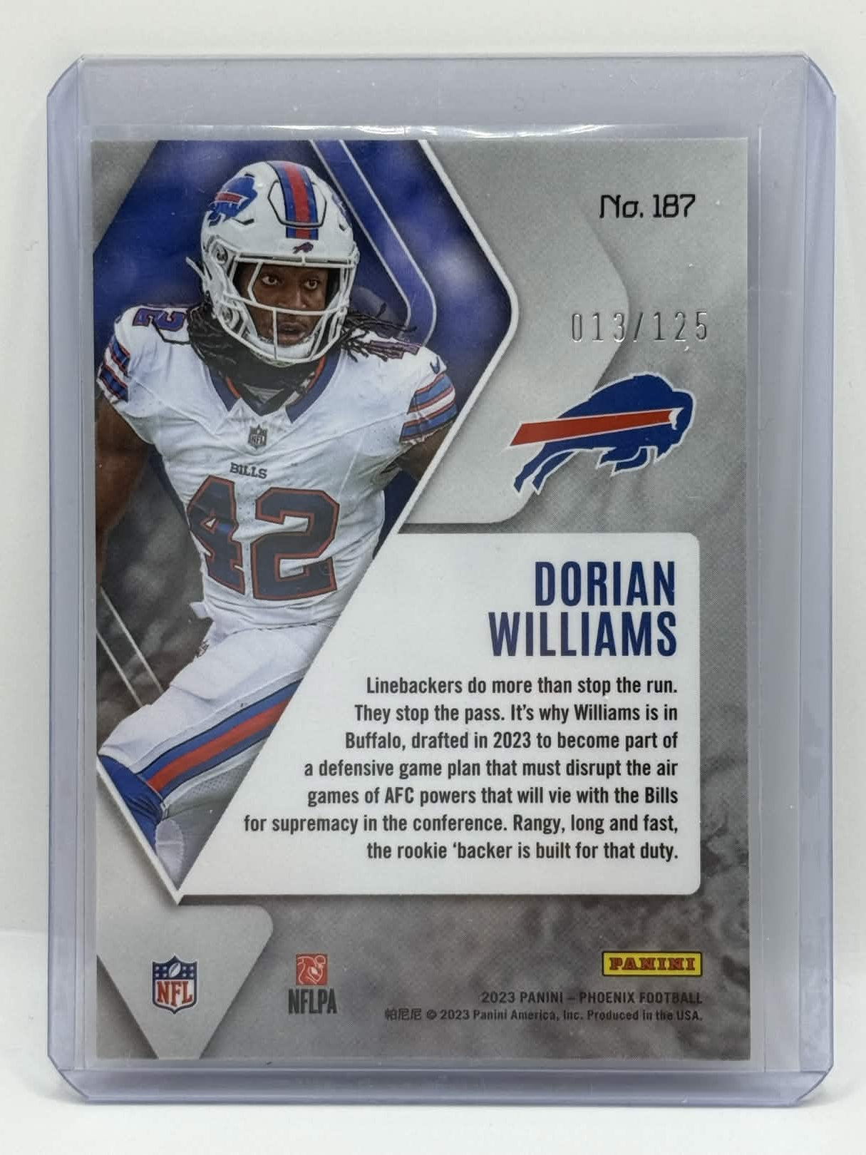 • 1x 2023 Panini Phoenix Football Dorian Williams Purple Seismic Rookie 013/125