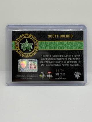 2025 Cricket Australia Traders Authentic Series Black Signature Scott Boland 24/94 - ASB 09/12