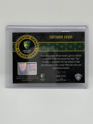 2025 Cricket Australia Traders Authentic Series Black Signature Nathan Lyon 26/94 - ASB 01/12
