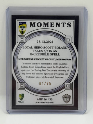 2025 Cricket Australia Traders The Ashes Moments Platinum Scott Boland Takes 6/7 - 01/75 - AMP 26/30