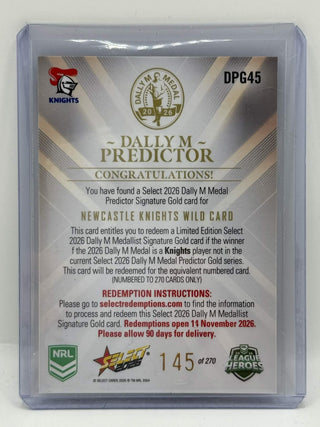 Select 2026 NRL League Heroes Dally M Predictor Gold Newcastle Knights Wild Card #145 of 270 - DPG45