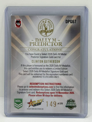 Select 2026 NRL League Heroes Dally M Predictor Gold Clinton Gutherson #149 of 270 - DPG67