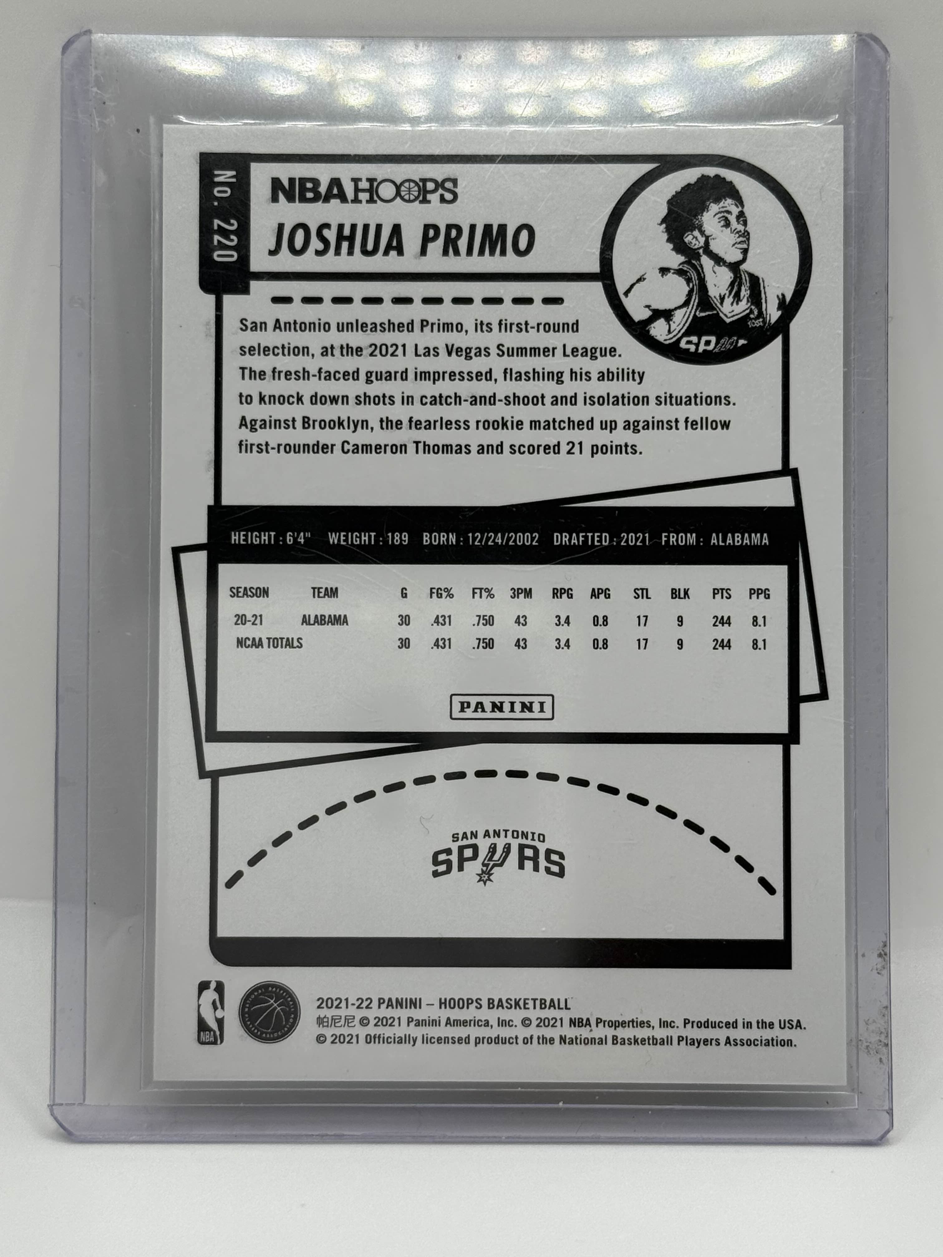 2021-22 Panini Hoops NBA 75th Anniversary Joshua Primo Rookie 03/75