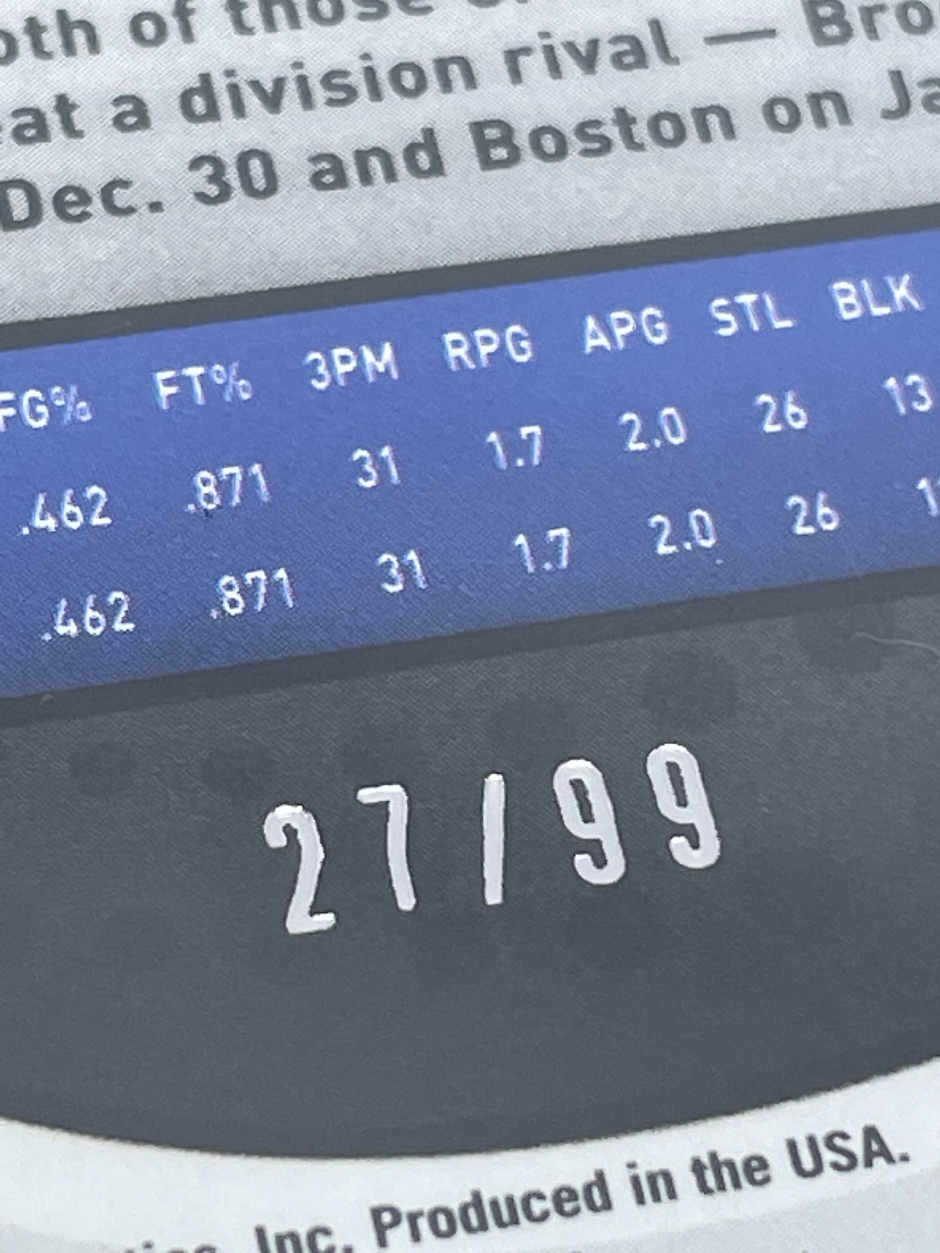 • 1x 2021-22 Panini Revolution Asia Tyrese Maxey Holo Silver 27/99