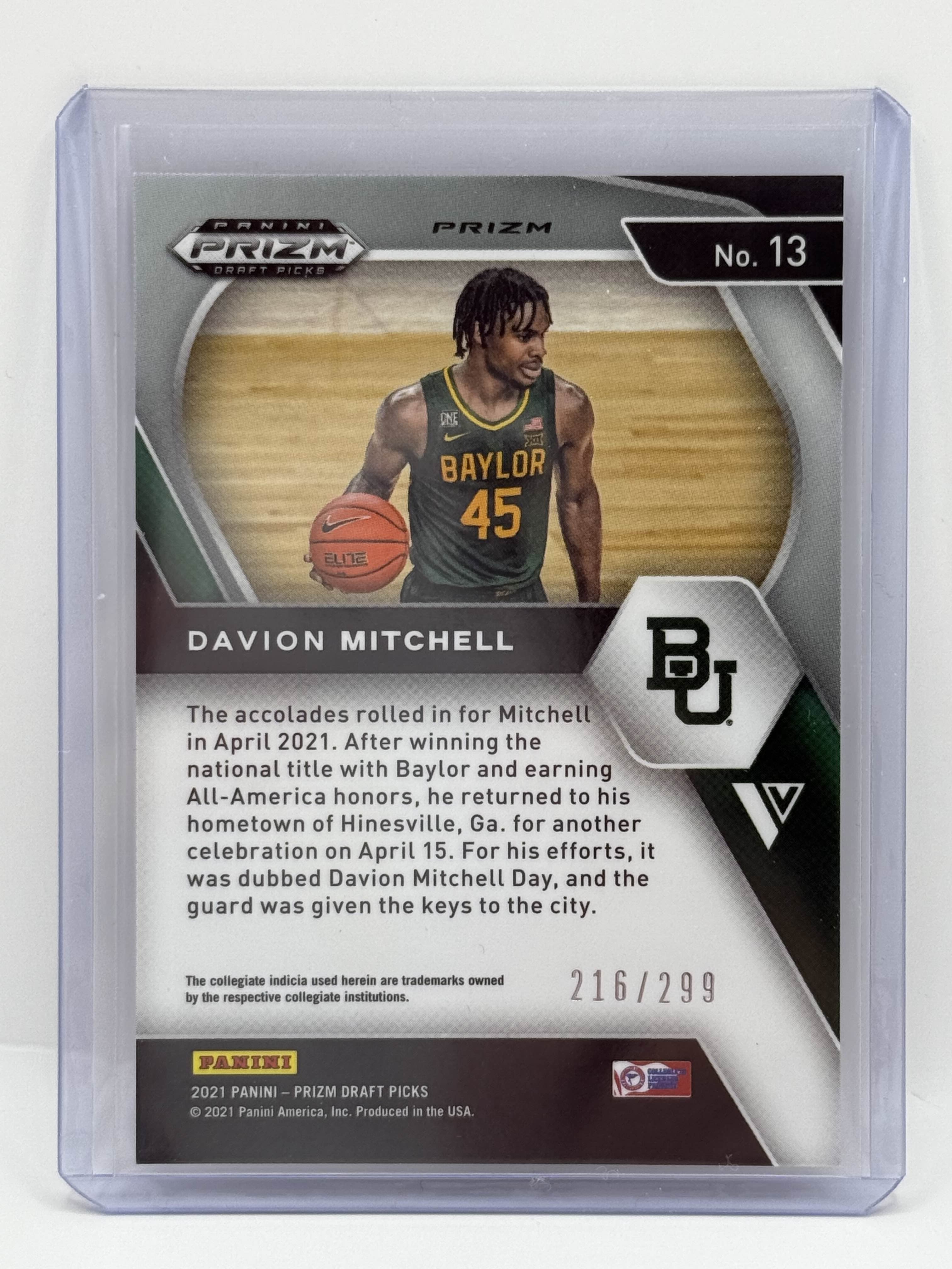 • 1x 2021 Panini Prizm Draft Picks Davion Mitchell Variation Red RC 216/299