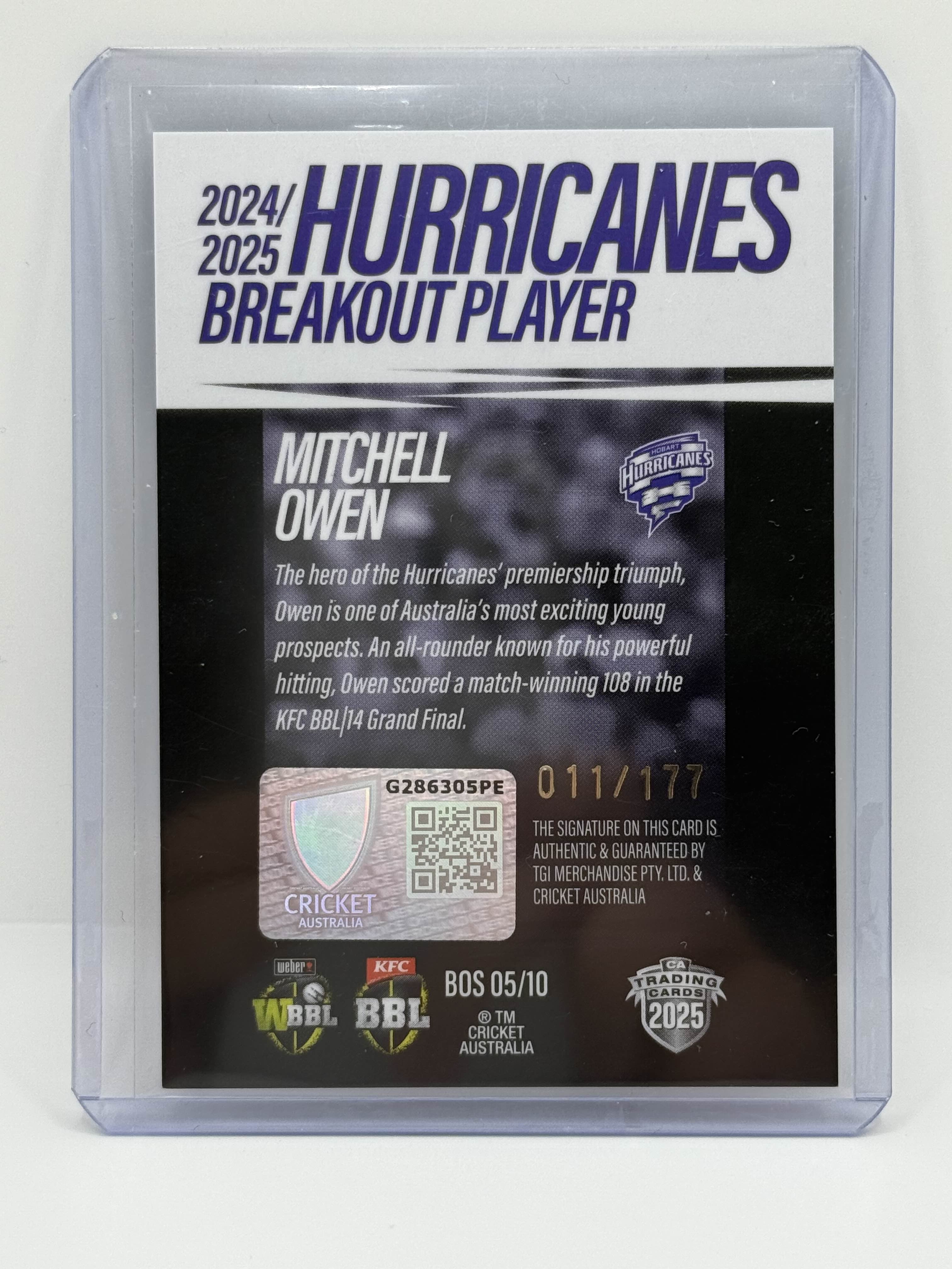 2024-25 Cricket Australia Traders Hobart Hurricanes Breakout Player Signatures Mitchell Owen 011/177 - BOS 05/10