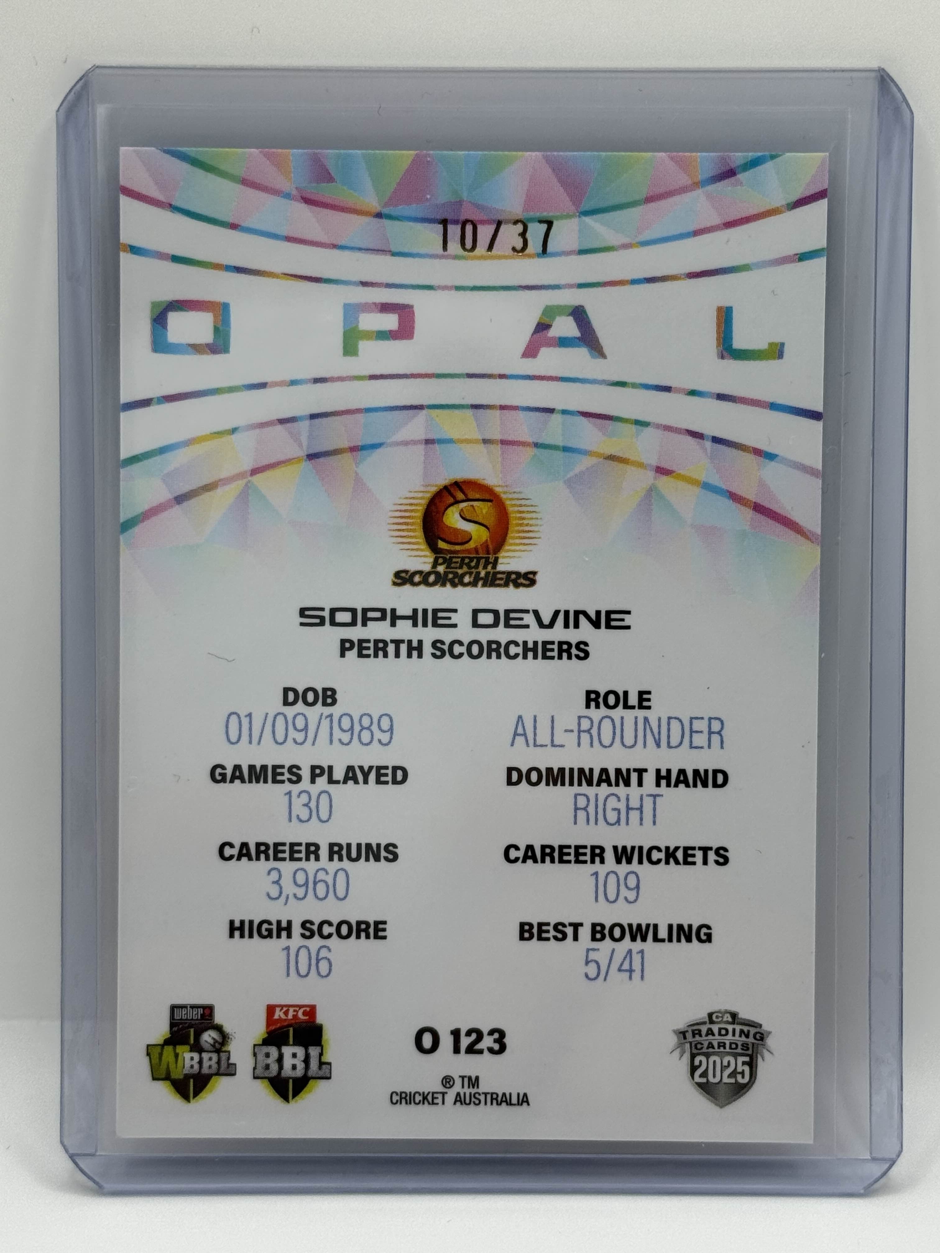 2025 Cricket Australia Traders Sophie Devine Mojo Opal White 10/37
