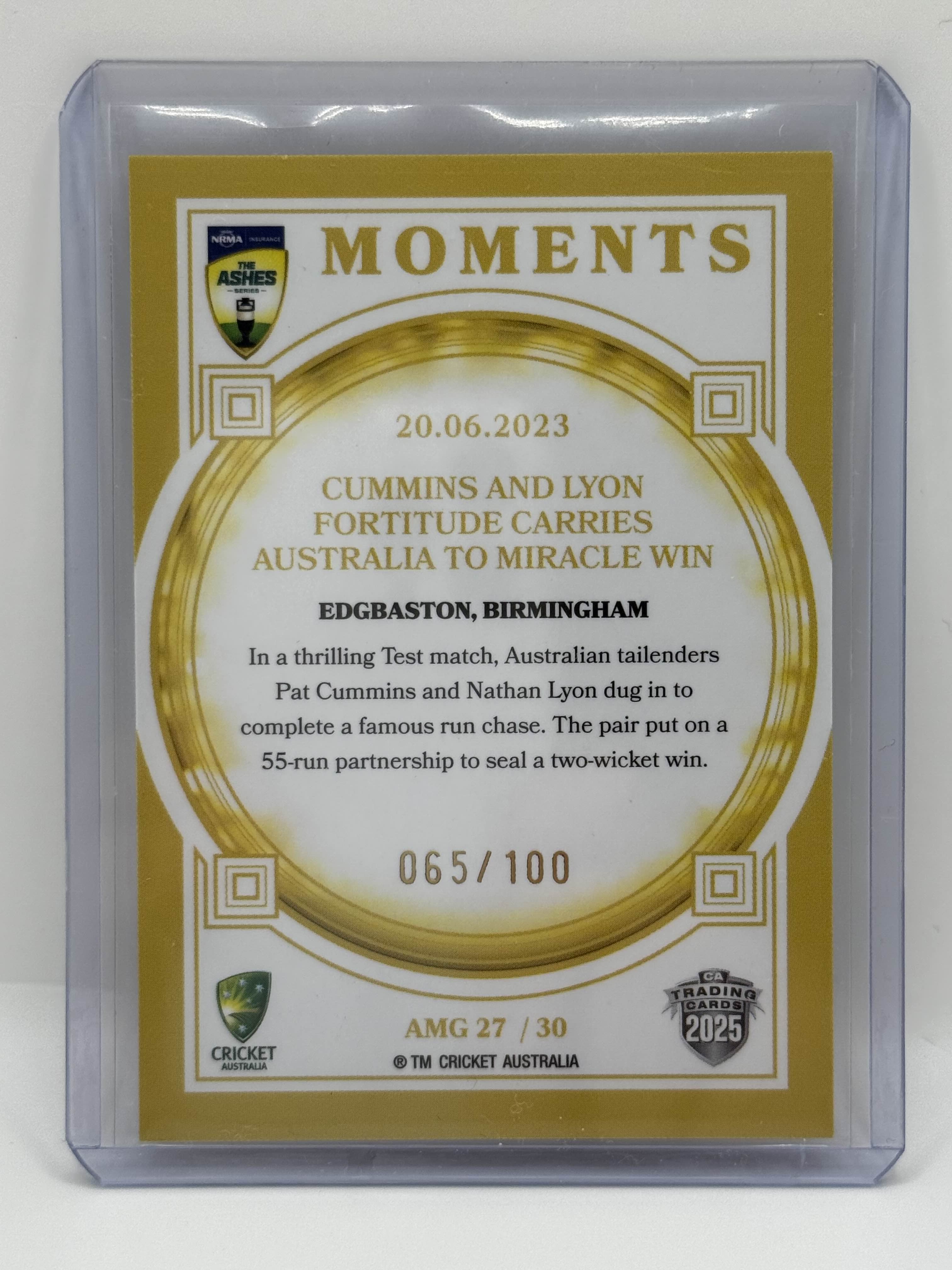 2025 Cricket Australia Traders The Ashes Moments Gold Cummins And Lyon Carries Australia To Miracle Win 065/100 - AMG 27/30