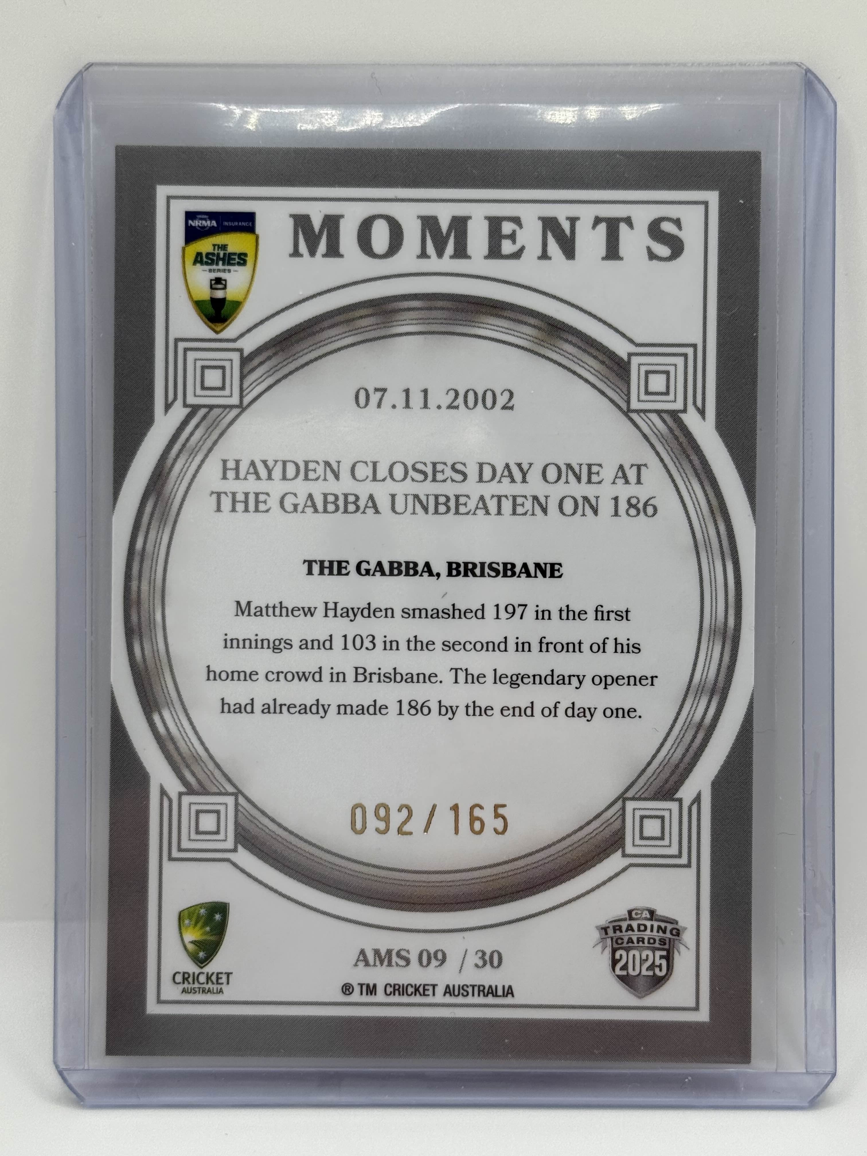 2025 Cricket Australia Traders The Ashes Moments Silver Matthew Hayden Gabba Day One 092/165 - AMS 09/30