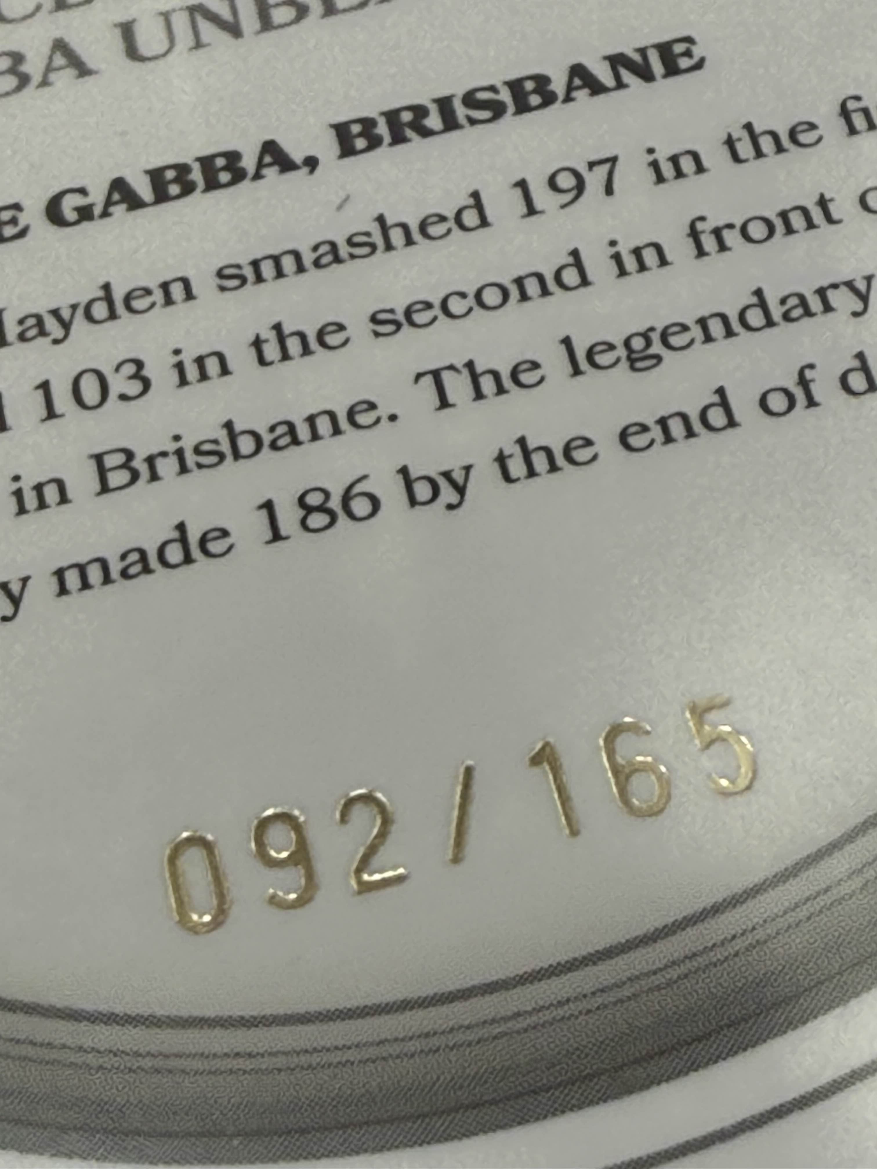 • 1x 2025 Cricket Australia Traders The Ashes Moments Silver Matthew Hayden Gabba Day One 092/165 - AMS 09/30